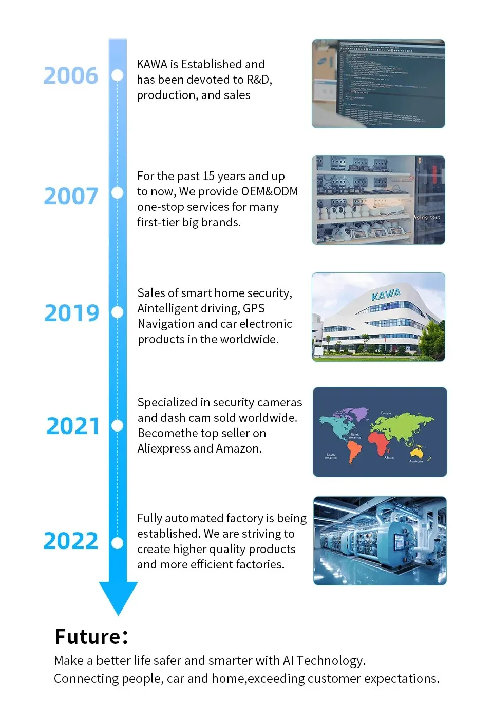 A KAWA é uma das líderes globais em hardware inteligente, desde o design, desenvolvimento até o fornecimento de produtos inovadores e de alta qualidade. Com base em nossa tecnologia core-machine vision, além do algoritmo de deep learning, pretendemos criar um produto avançado para onde o ser humano em todo o mundo por constantes inovações tecnológicas. KAWA está criando um ambiente seguro e conveniente pela tecnologia samrt que simplificará a experiência de casa inteligente e tornará as pessoas mais relaxadas, confortáveis e agradáveis. A base cobre uma área de 30000 medidores quadrados, mais de 2000 empregados, com teste automático avançado e equipamento de produção, e sistema de gestão do informationization.